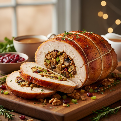 ¿Quieres un plato principal impresionante para tu cena navideña sin pasar horas en la cocina? Esta receta de pechuga de pavo rellena es la solución perfecta. Al usar solo la pechuga, el tiempo de cocción se reduce significativamente, y el relleno la mantiene increíblemente jugosa y llena de sabor. Es una opción elegante, deliciosa y sorprendentemente fácil de preparar, ¡ideal para compartir en familia!